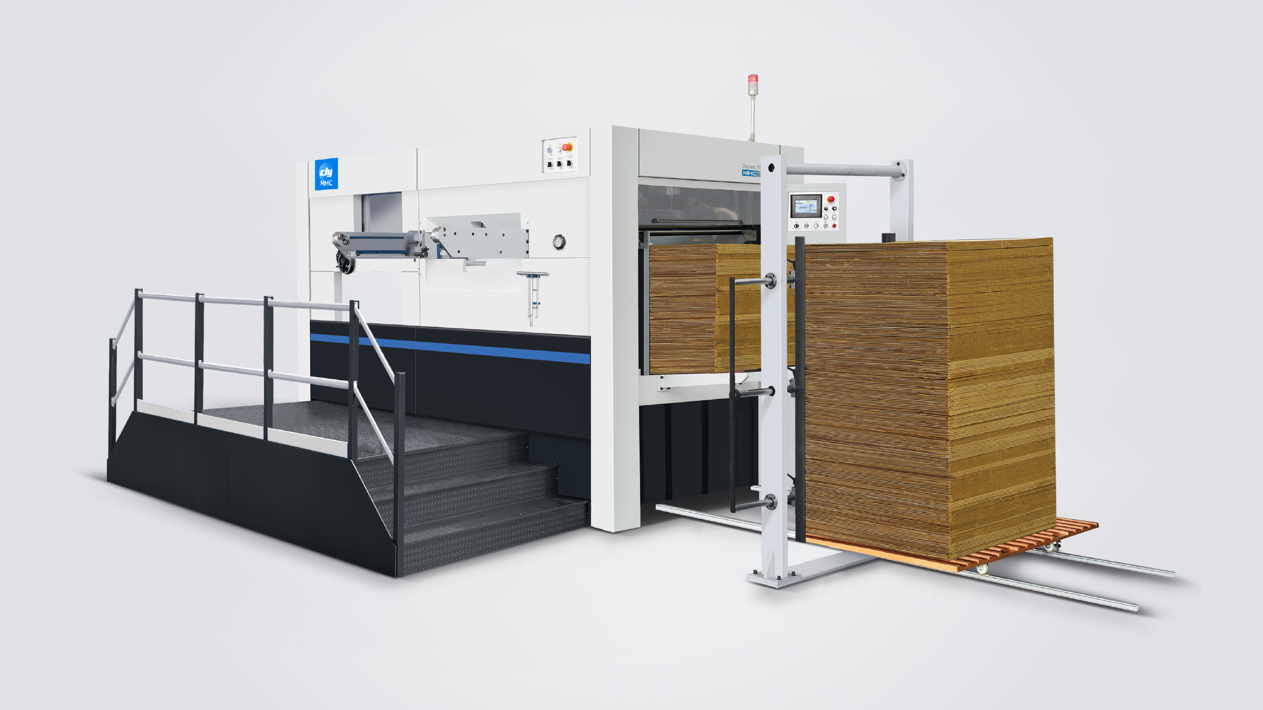 全自動下吸盤送紙帶清廢平壓平模切機(收紙部自動換托盤)