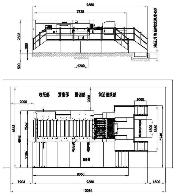 | 整機尺寸 (高堆卷簾式收紙) | 9180×5240×2767mm(L×W×H) (寬含腳踏板) | 9700×5240×2790mm(L×W×H) (寬含腳踏板) | 9680×5240×2803mm(L×W×H) (寬含腳踏板) | 9939×5580×2932mm(L×W×H) (寬含腳踏板) |