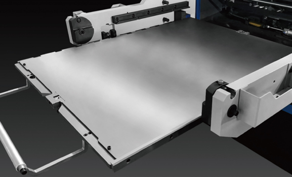 采用氣彈簧輔助動力,到位減速機構裝置,與壓紙框配備整體調節壓紙輪裝置,方便快速調節。