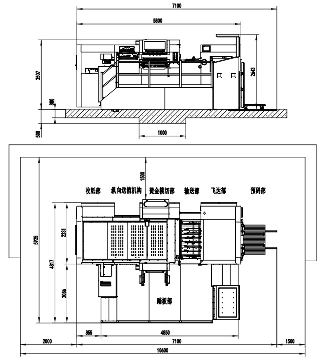 | Machine Dimensions | 7100×5017×2643mm(L×W×H) (L: paper prepared track included, W: platform included) |