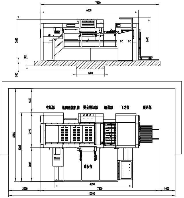 | Machine Dimensions | 7300×4306×2673mm (L×W×H) (L: paper prepared track included, W: platform included) |