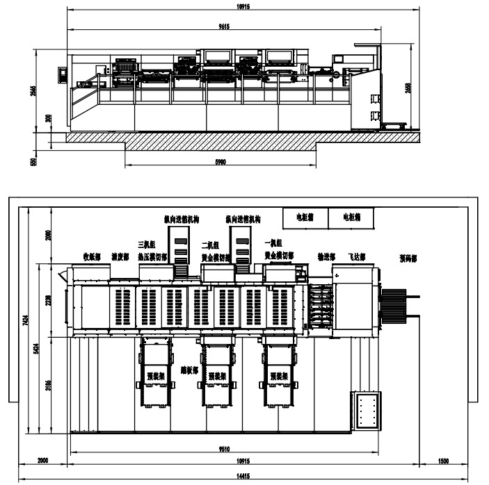 | Machine Dimensions(Including Die Preloader) | 10915×7424×2658mm(L×W×H) (L: paper prepared track included, W: platform included) |