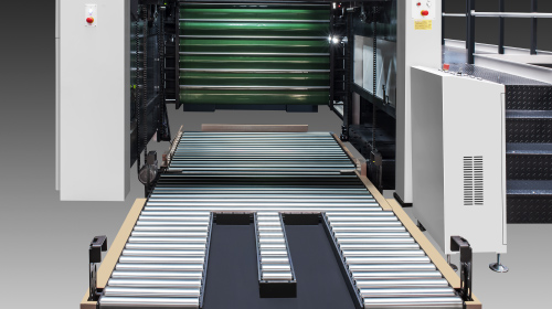 ● Front edge waste removal system removes and transfers waste edge outside the machine via conveyor belt.