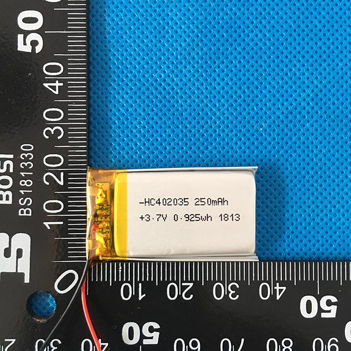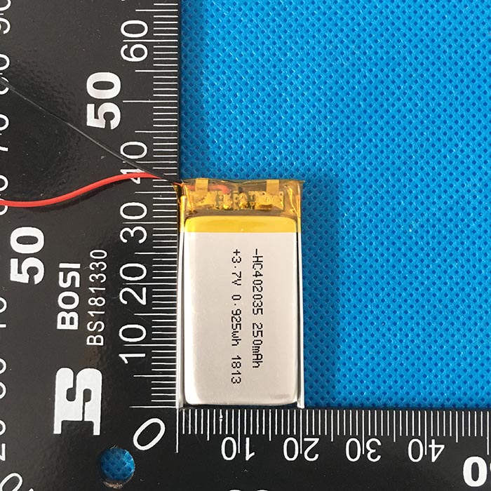 電池型號:KC402035-250 組合方式:1S1P(單體電池)