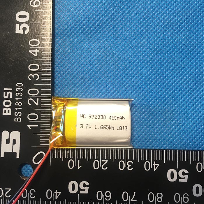 電池型號(hào):KC902030-450 組合方式:1S1P(單體電池)